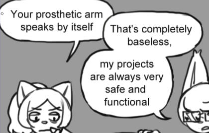 CORRECTIONIf you read today's strip, "safe and functional" I forgot to fix a mayor mistake with the speech bubbles before uploading it, the corrected version is on the right.This is what happens when you make a comic when you have ADHD.